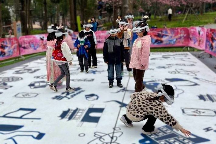 依托武汉东湖樱花园的海量游客,数旅集团在消费业态打造上开展全新突破与尝试,打破单一赏花游览模式,通过丰富消费业态、延长游客停留时长,将传统赏樱游升级为沉浸式、体验式的文旅消费新体验。集团充分发挥平台资源整合优势,紧扣樱花季游客消费需求,在樱花园内落地紫荆未来全感VR快闪店、樱花文创市集等多元消费项目,成功构建起“赏花+体验+消费+打卡”的全新文旅消费场景。
