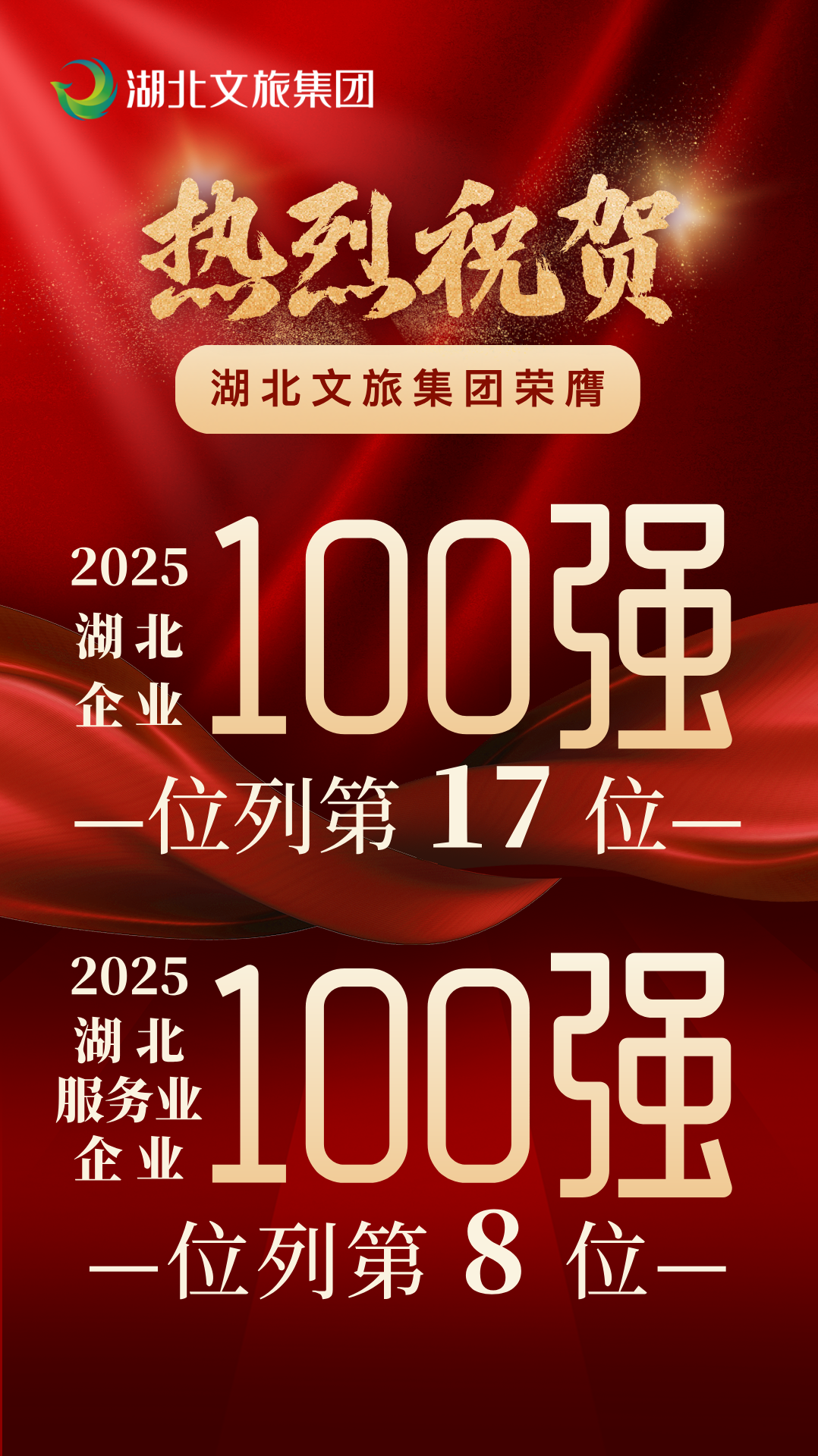 湖北文旅集团荣膺2025湖北企业、湖北服务业企业“双百强”。日前,湖北省企业联合会、湖北省企业家协会在武汉召开“2025湖北企业三项100强发布会”,向社会发布“2025湖北企业100强、湖北制造业企业100强、湖北服务业企业100强”名单。湖北文旅集团位列湖北企业100强第17位、服务业企业100强第8位。2025年,集团连续两年跻身中国企业500强,排名提升至第411位,提升84位;连续四年入选中国服务业企业500强,排名升至第137位,提升27位;连续七年获评“中国旅游集团20强”。集团综合实力持续增强,已进入全国文旅企业第一梯队。