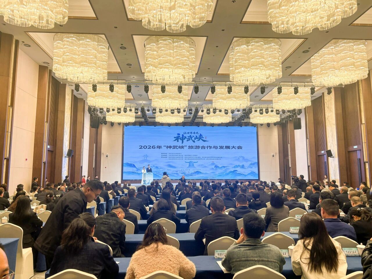 2026“神武峡”旅游合作与发展大会在神农架盛大启幕。4月22日,神农架慢城国际酒店内嘉宾云集,2026年“神武峡”旅游合作与发展大会在此隆重举行, 本次大会以让世界看见‘神武峡’”为主题,由湖北省文化和旅游厅指导,神农架林区党委、政府主办,湖北神农架文化旅游集团有限公司等多家单位联合承办。来自鄂西及周边区域的文旅部门代表、国内重点旅行商、OTA平台负责人、全国百强自驾俱乐部以及新闻媒体代表齐聚“华中屋脊”,共同擘画“神武峡”文旅主轴高质量发展的崭新蓝图。